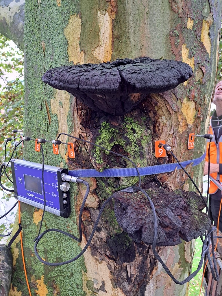 Bij veel oude bomen is de stam of stamvoet hol als gevolg van aantasting door houtrotveroorzakende schimmels. Wanneer er onvoldoende zekerheid bestaat of de boom hierdoor kan omvallen of afbreken, is het zinvol te bepalen hoeveel gezond hout de holte of aangetaste plek nog omringt en of dit nog voldoende stevigheid voor de boom biedt. Zo’n meting van de ‘restwanddikte’ voor de bepaling van de kans op windworp of stambreuk wordt uitgevoerd met een geluidstomograaf.